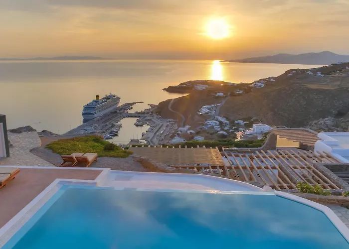 Die 8-Zimmer-Ferienwohnung Manolia View Mykonos Tourlos liegt rund 5 Gehminuten vom Strand Tourlos entfernt und verfügt über einen Patio und eine Terrasse. Gäste des Hotels können einen Blick aufs Ägäische Meer genießen sowie sich an einem Swimmingpool entspannen.